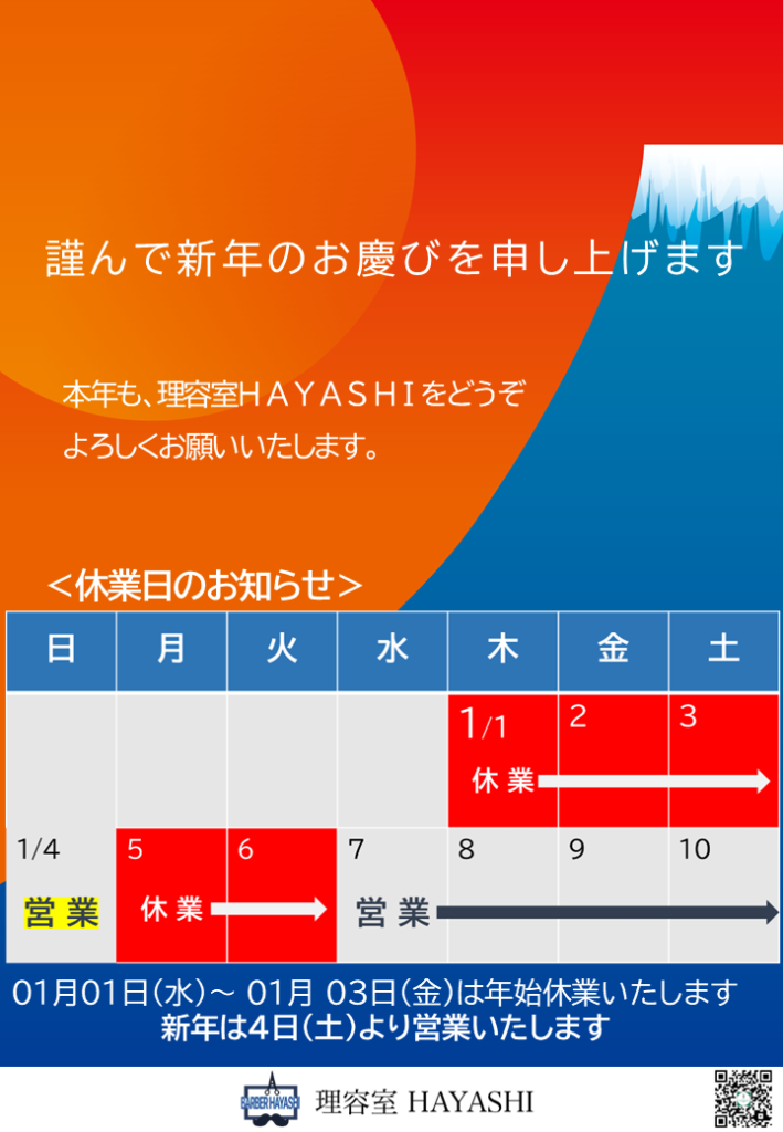 本年も、理容室HAYASHIをどうぞよろしくお願いいたします。